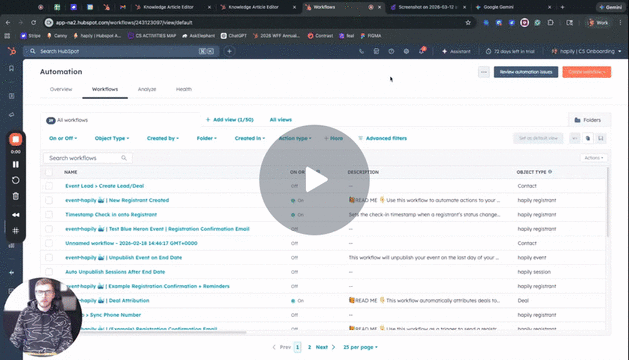 During an event, any registrant you check in using the event·hapily check-in page is automatically marked as Attended. However, those who do not show up will remain marked as Registered. By creating a simple HubSpot workflow, you can automatically update these remaining registrants to Did Not Attend once the event has concluded.