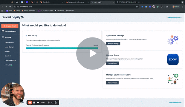 Before your sales team can use the hapily Lead Capture app, an Admin must create an event record in HubSpot and mark it as available for lead capture.