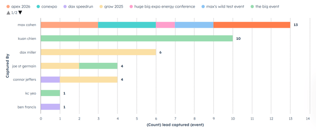 Example: You can see who captured the most leads at INBOUND, Dreamforce, or any other specific event.