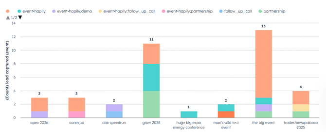 This visualization helps you understand which events generated the most leads and which products were most popular at each event.