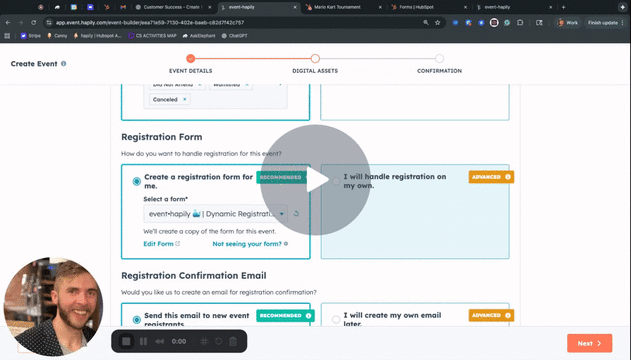 When you create an event using Event Builder, you’ll be asked whether you want a Registration Form.