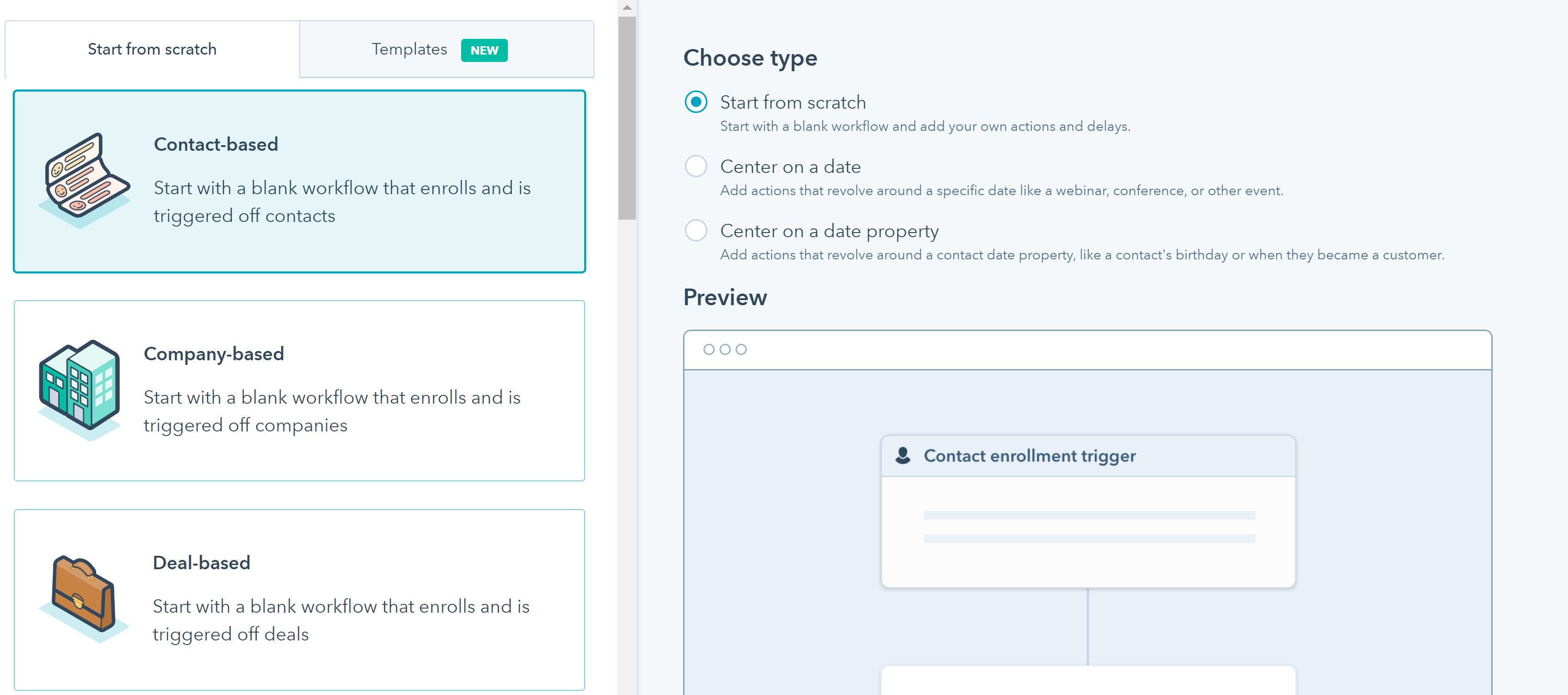 1. Start by creating a Workflow from scratch, based upon the Contact object. Don't forget to name it!