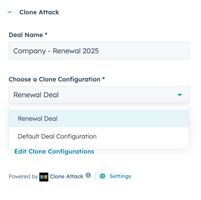 Clone Configurations in Clone Attack let you customize how HubSpot records (Deals, Tickets, Contacts, or Companies) are cloned. You can control which fields get copied, which are left blank, and even set default values for specific properties—giving your team consistency and control when duplicating records.