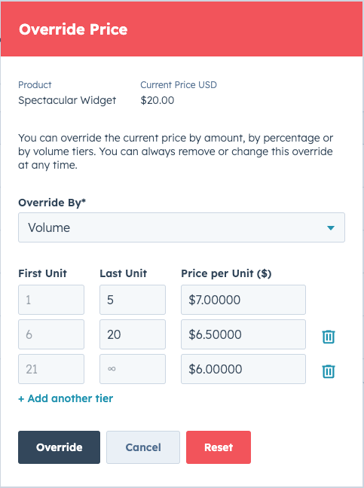 Note: Volume pricing considers the quantity of all similar SKUs when determining the volume tier.