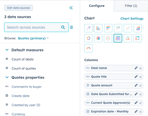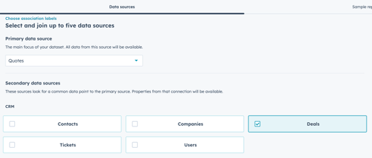 - Choose Quotes as the primary data source and Deals as (one of) the secondary data source(s).