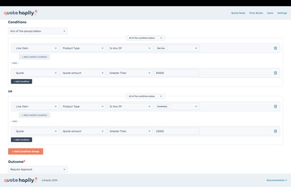 Creating and managing Quote Rules in quote•hapily helps ensure that your pricing and approval processes are consistent and compliant with your business standards. By following the steps outlined above, you can easily set up rules that match your specific needs.