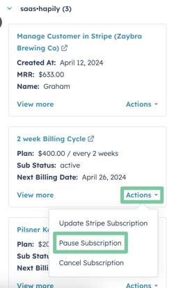 saas·hapily makes pausing Stripe Subscription within HubSpot a flawless experience.