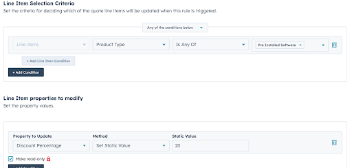 Updating line items within a quote based on conditions being met inside hubspot or within a quote