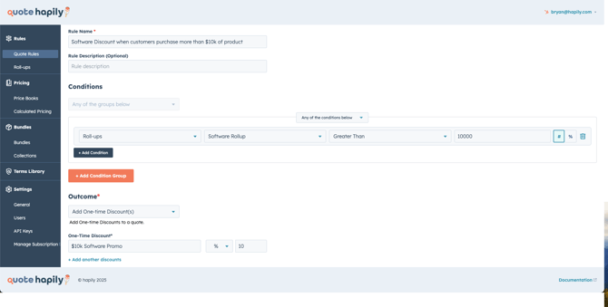 How to Set Up a Roll-up in quote•hapily and use them to create outcomes