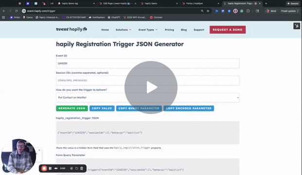 To simplify setup, event·hapily provides a Registration Trigger JSON Generator.